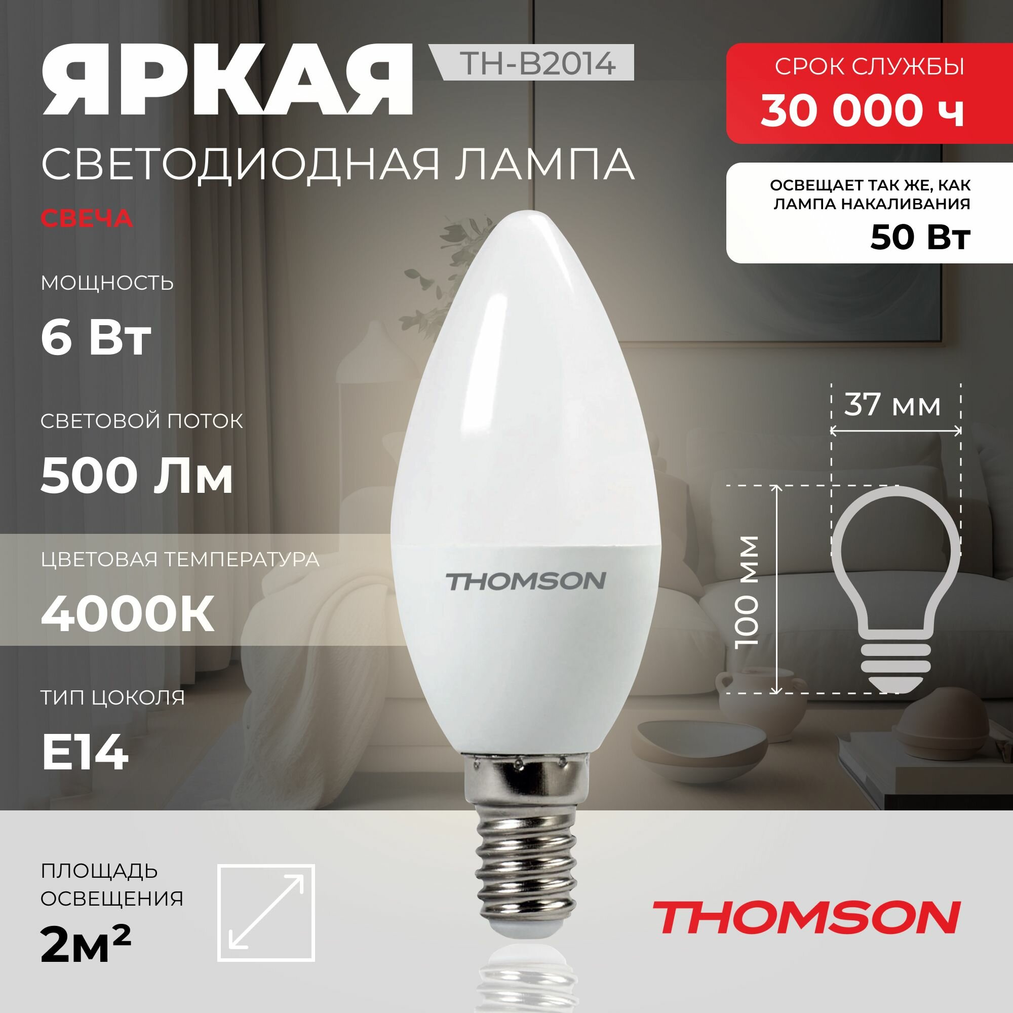 Лампочка Thomson TH-B2014 6 Вт, E14, 4000K, свеча, нейтральный белый свет