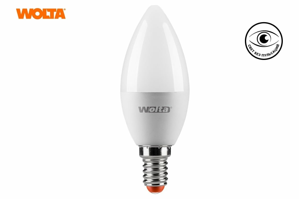 Светодиодная LED лампа свеча Wolta C37 E14 7,5W(625Lm) 4000K 4K 4K 100X37 25SC7.5E14