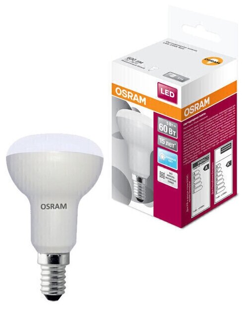 Лампа светодиодная OSRAM 7Вт 220В Гриб E14 R50 600Лм 4000К Нейтральный белый, уп. 10шт интересное: