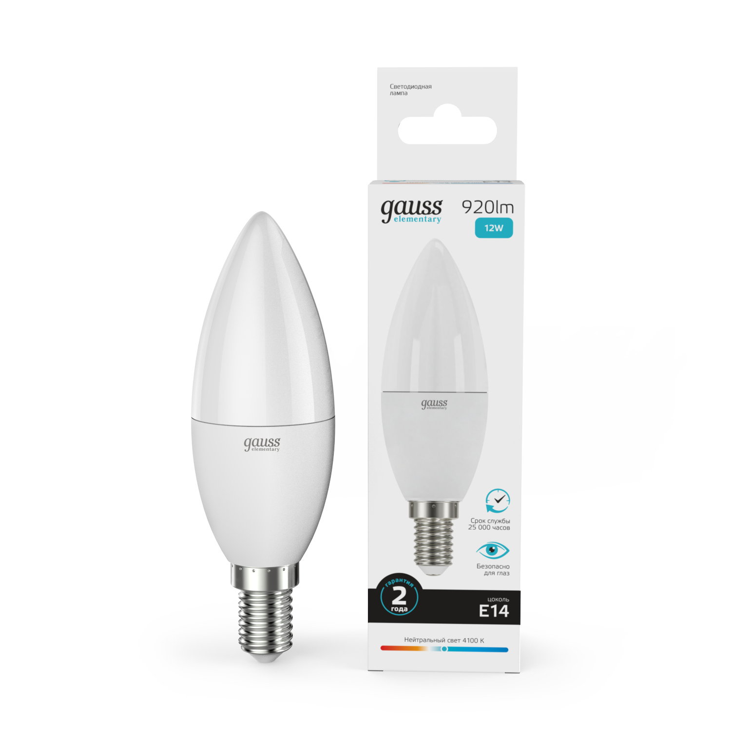 Лампа светодиодная Gauss 12 вт, цоколь е14, свеча, нейтральный белый, 25000 ч, b37-12w-4100-e14