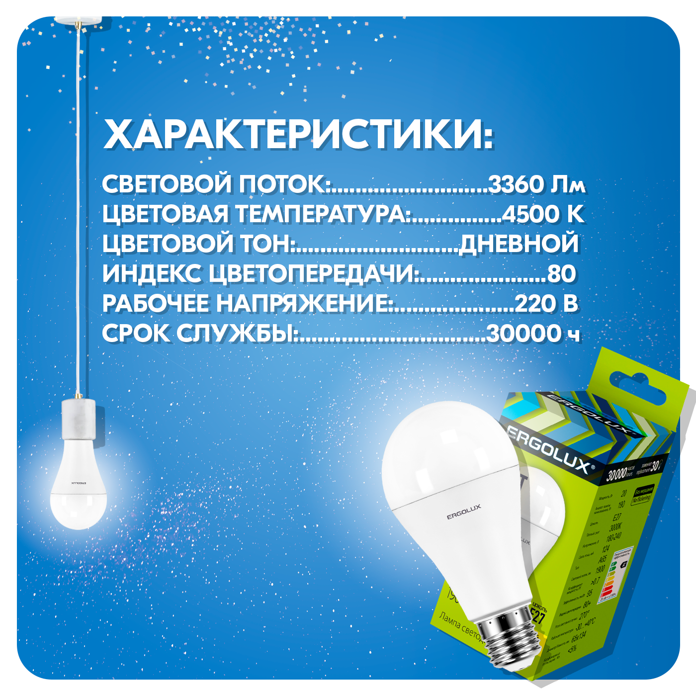 Лампочка ERGOLUX LED-A70-35W-E27-4K 35 Вт, 4500K, E27, белый