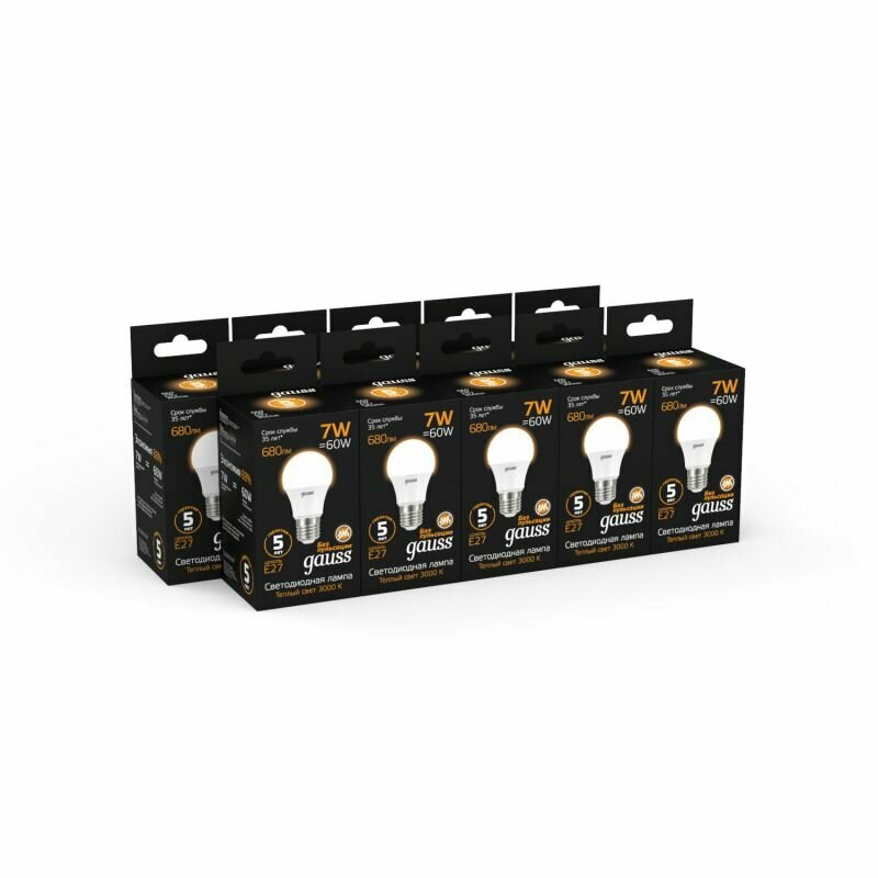 GAUSS Светодиодные лампы 102502107 Светодиодная лампа LED A60 E27 7W 680lm 3000K 1 10 50