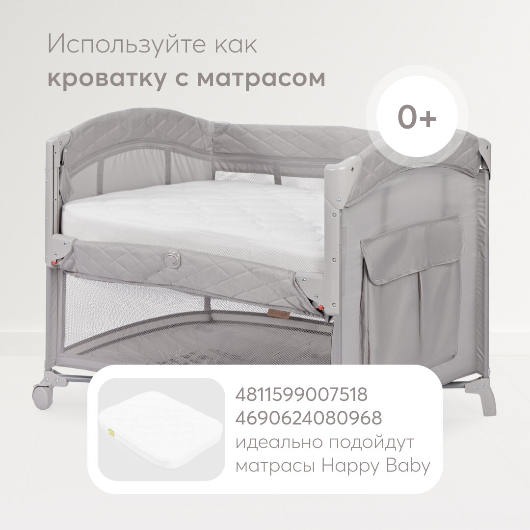 Манеж-кроватка Happy Baby WILSON, складной, с колёсами, регулировка высоты, от 0 до 3 лет, молочный