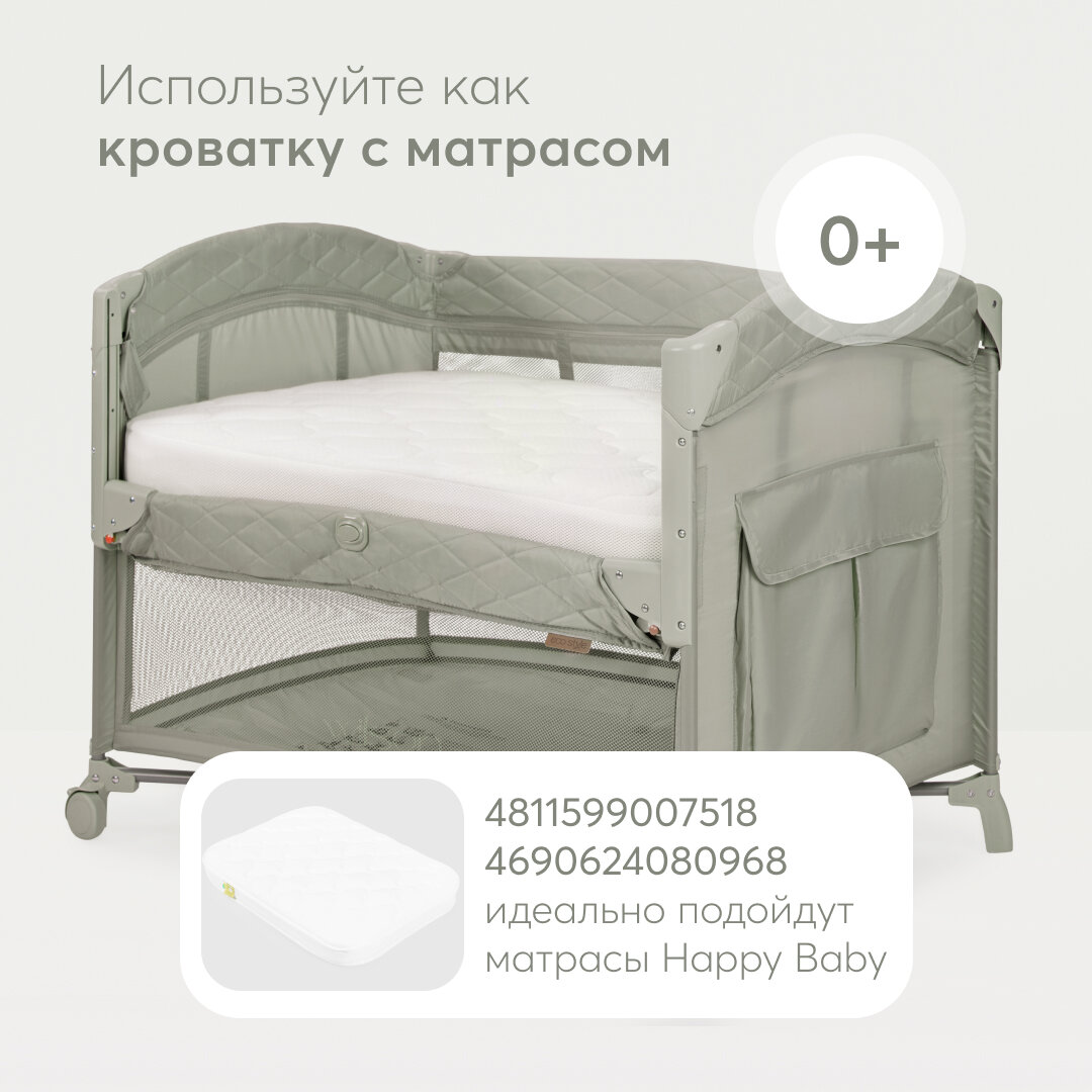 Манеж-кроватка Happy Baby WILSON, складной, с колёсами, регулировка высоты, от 0 до 3 лет, зеленый