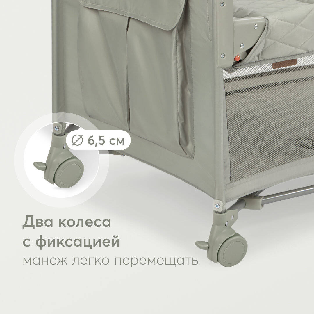 Манеж складной Happy Baby WILSON, манеж кровать с колёсами, регулировка высоты, сумка-чехол в комплекте, оливковый