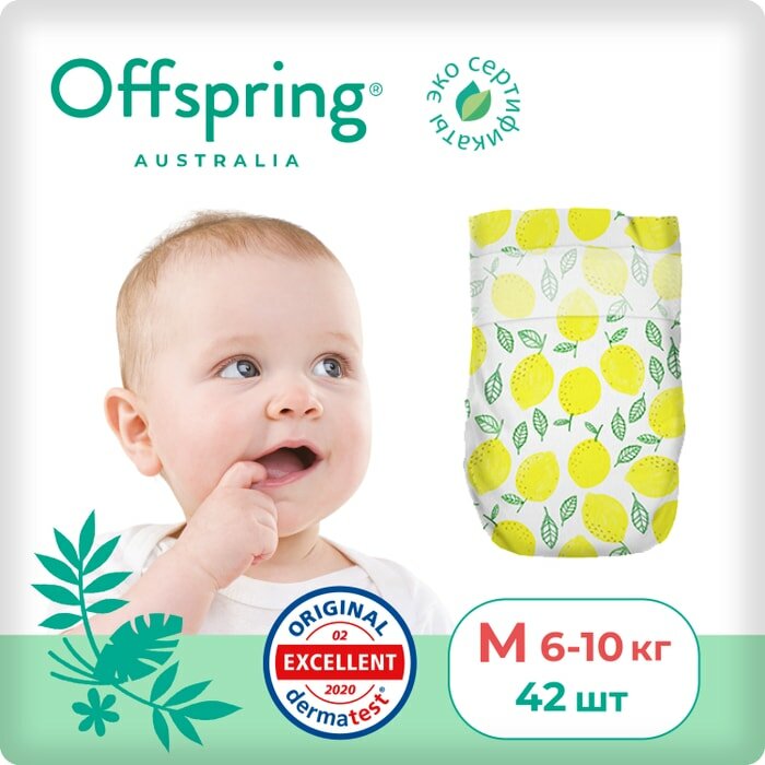 Эко-подгузники Offspring, размер S 3-6 кг. 48 шт. Лимоны