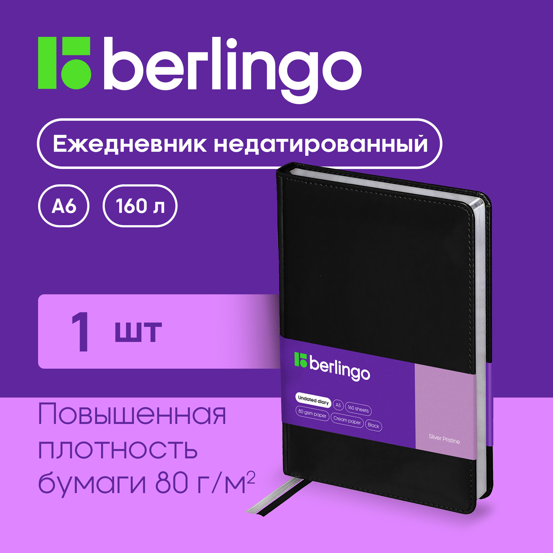 Купить Ежедневник недатированный А5, 160 листов, Berlingo "Silver Pristine". Блокнот/ планер/ записная книжка в линейку, под кожу, серебряный срез, черный, в подарок