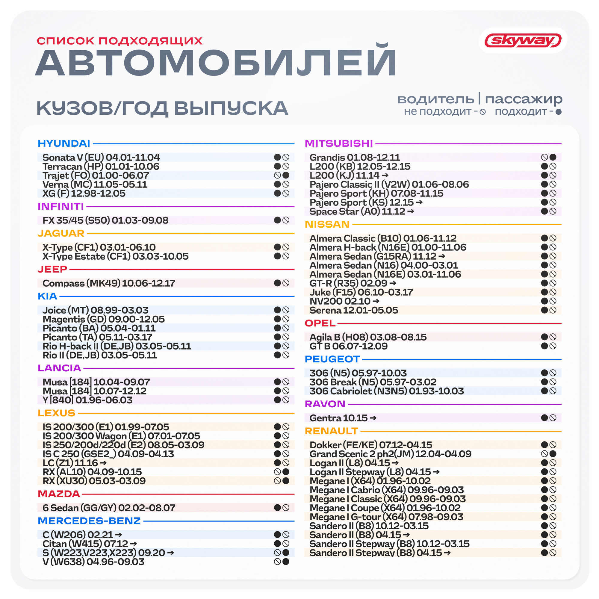 | Модель автомобиля | любая |