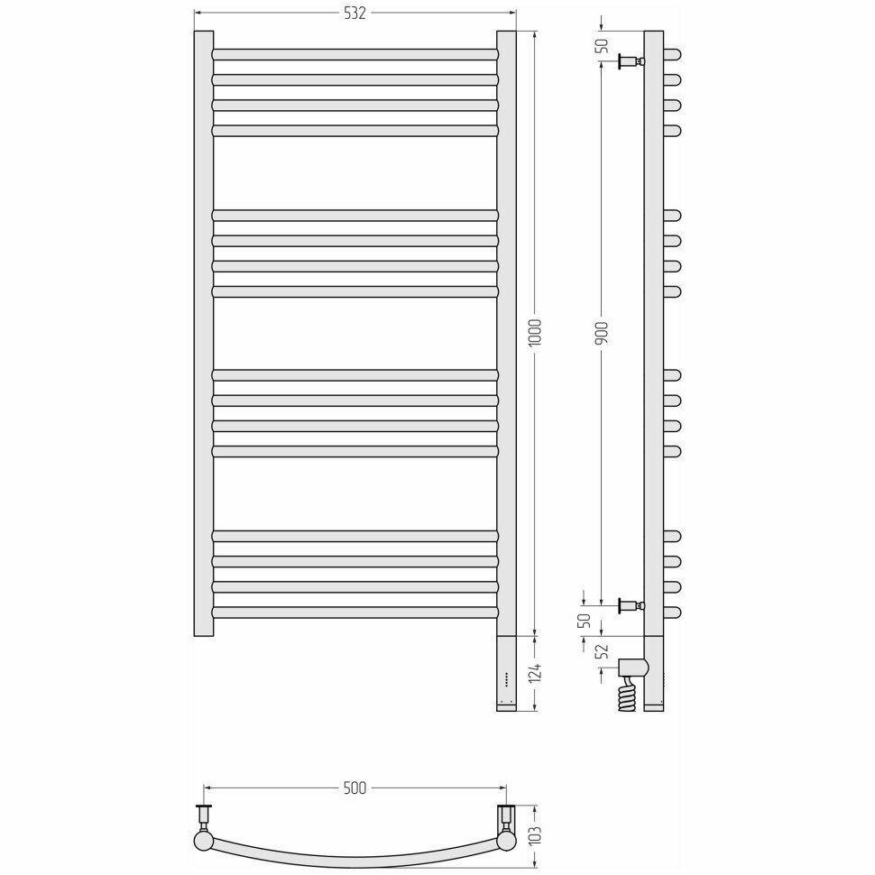 Электрический полотенцесушитель Сунержа Богема 3.0 выгнутая 1000x500 МЭМ Пр. матовый белый арт. 30-5803-1050