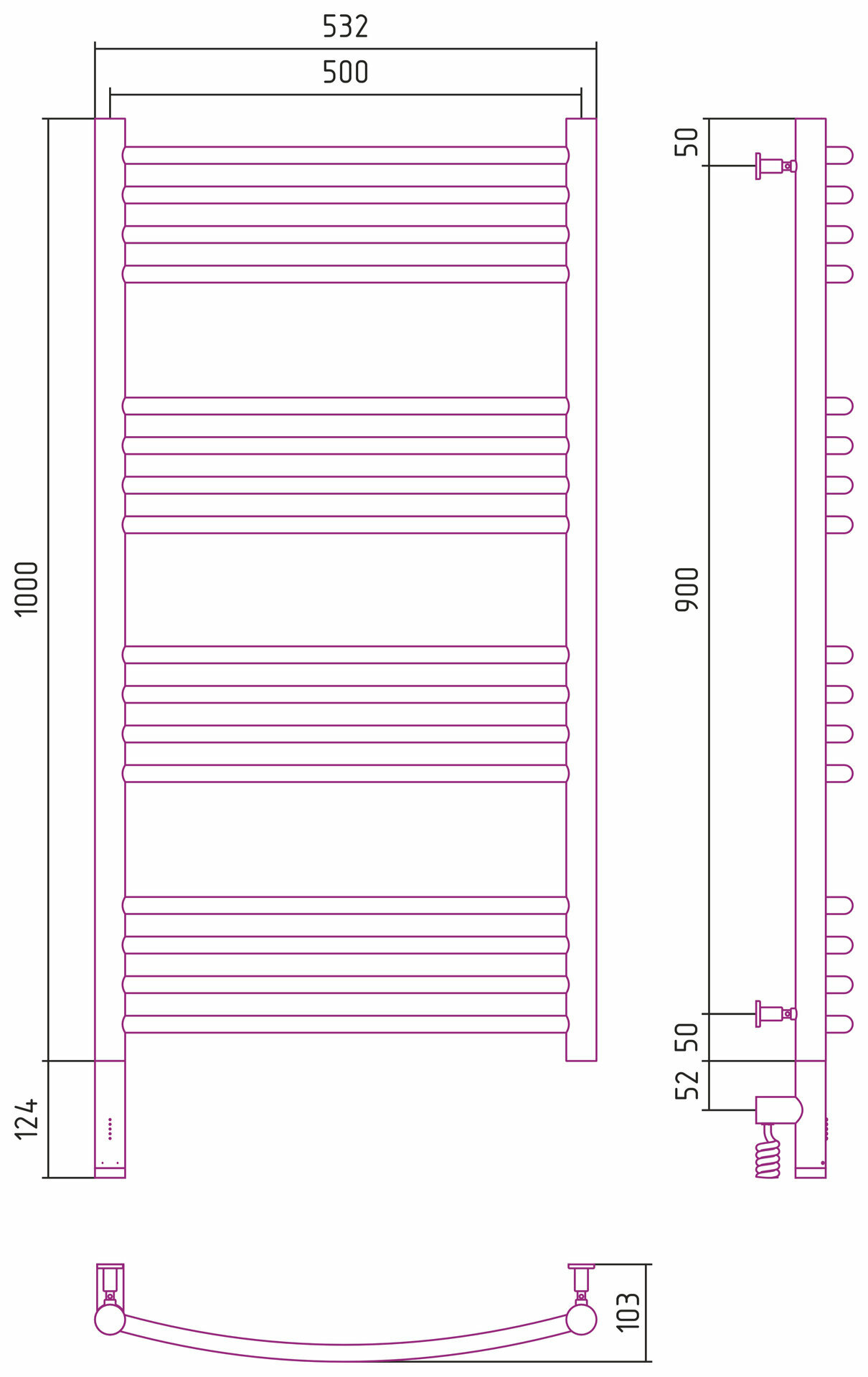 Электрический полотенцесушитель Сунержа Богема 3.0 выгнутая 1000х500 31-5802-1050 матовый черный