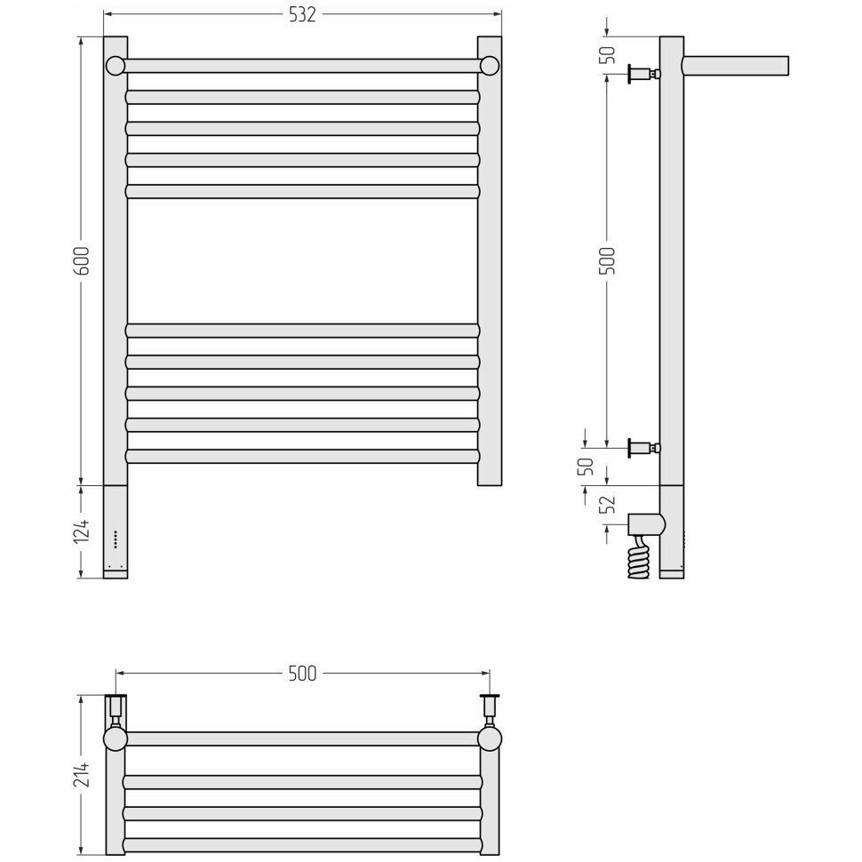 Полотенцесушитель электрический Сунержа 31-5806-6050 Богема 3.0 Полотенцесушитель электрический РЭБ, 1П 600х500 мм/ МЭМ левый, матовый черный