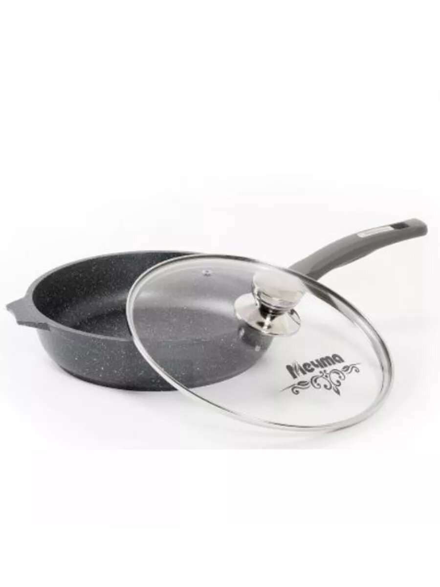 мечта с26802 гранит black 26см с несъемной ручкой и стекл. крышкой сковорода