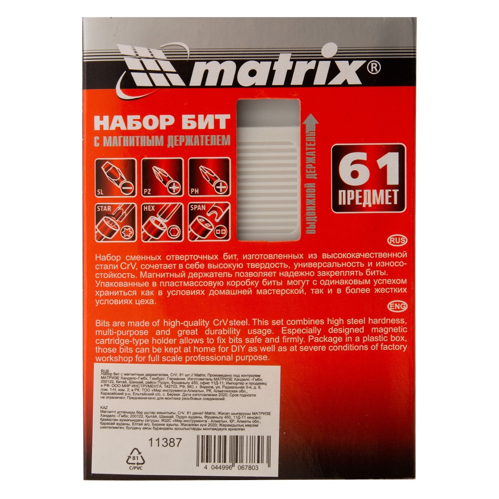 Купить Набор бит Matrix 11387, с магнитным держателем, CrV,61шт