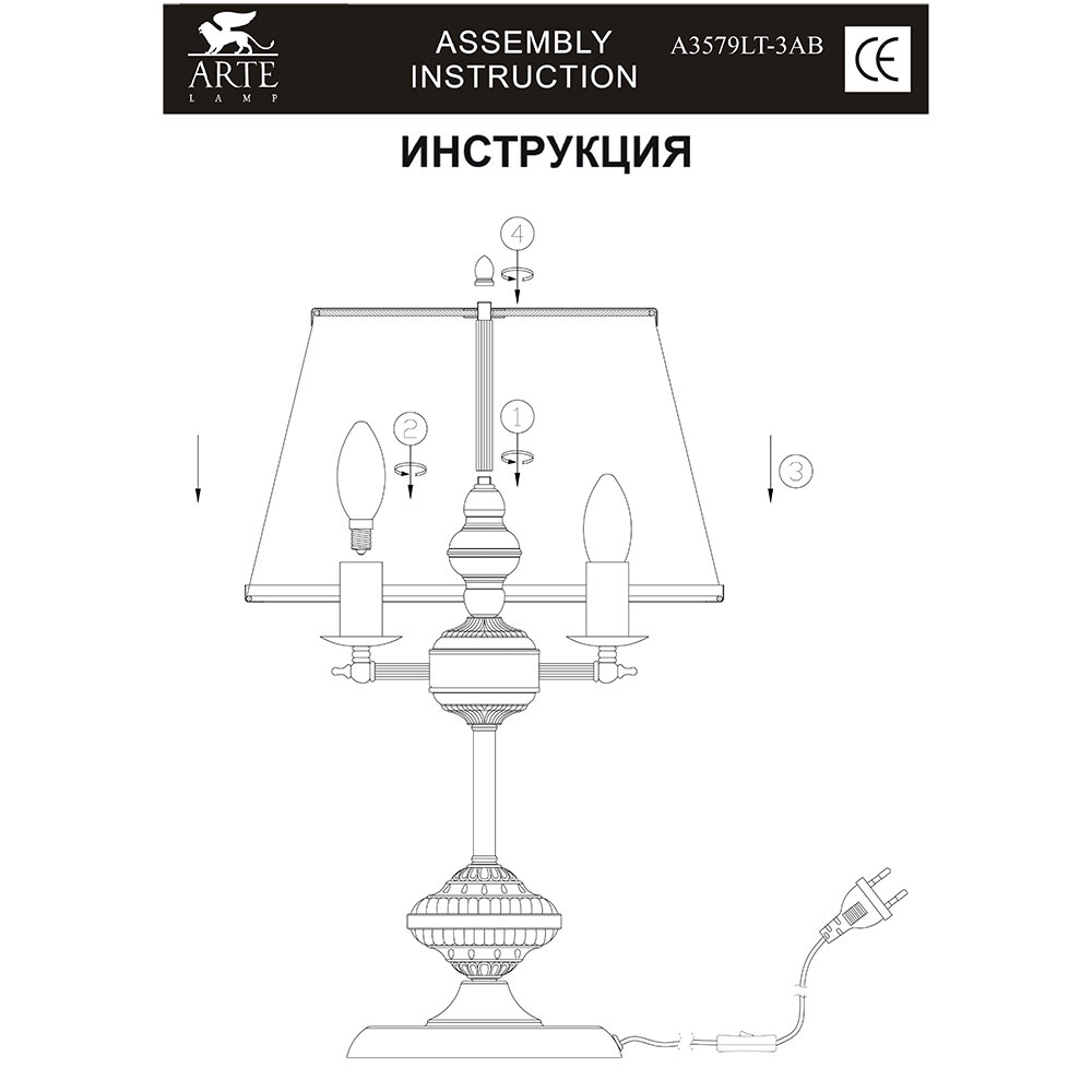 Настольная лампа A3579LT-3AB ARTE Lamp интересное: