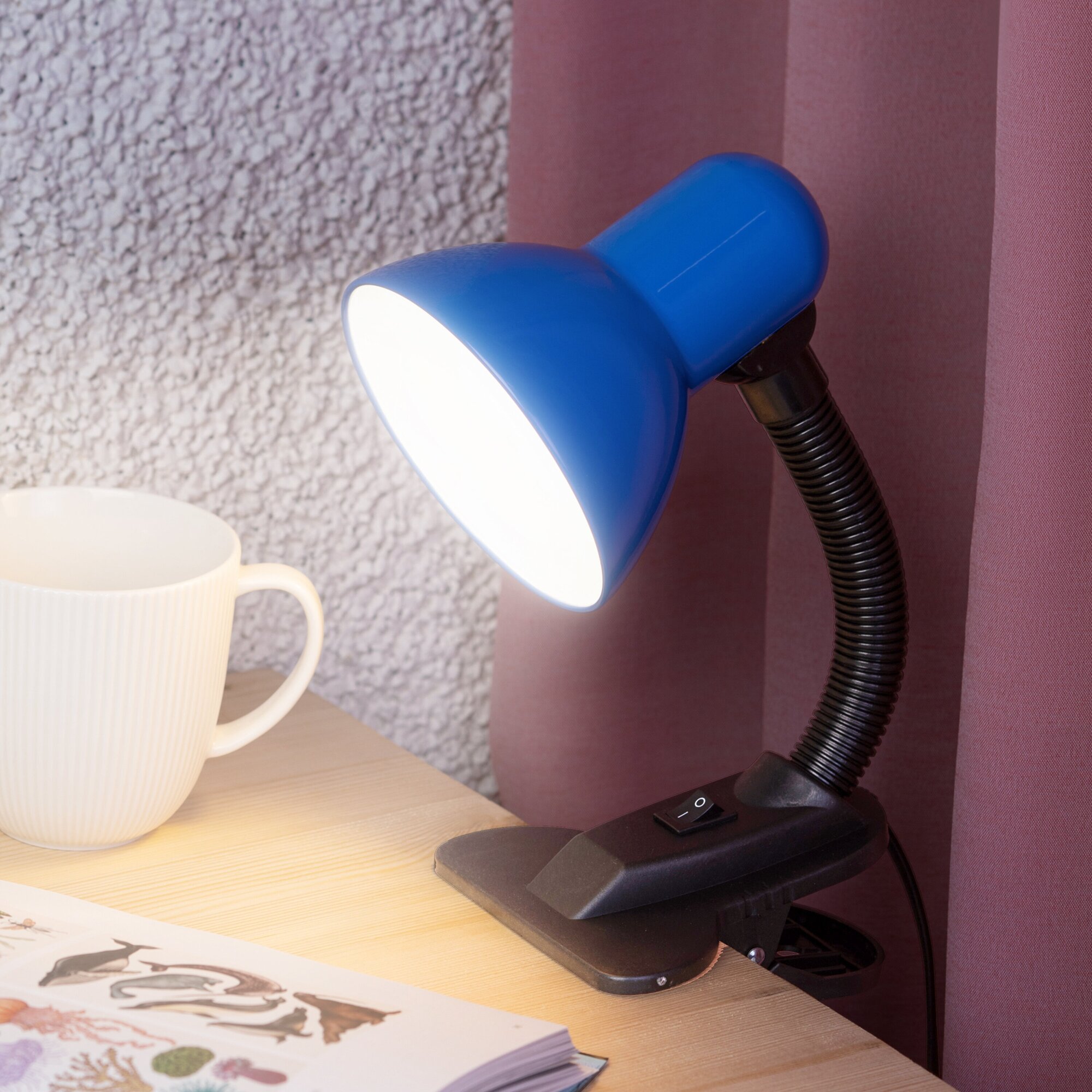 Светильник настольный под лампу на прищепке 40Вт E27 синий N-102-E27-40W-BU ЭРА