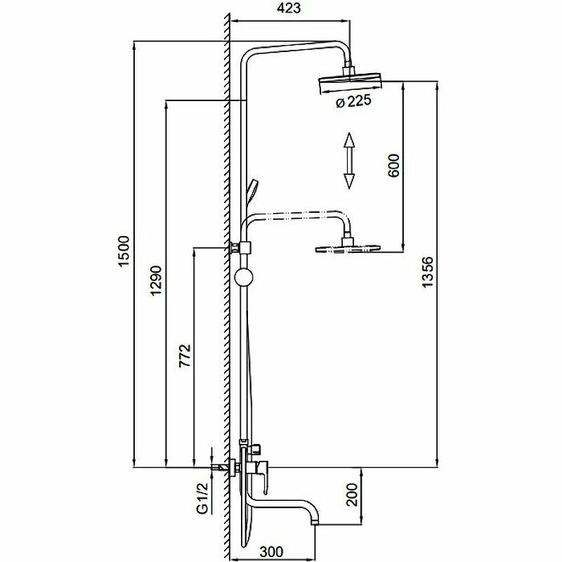 | Особенности | держатель душевой лейки / регулируемый верхний душ |