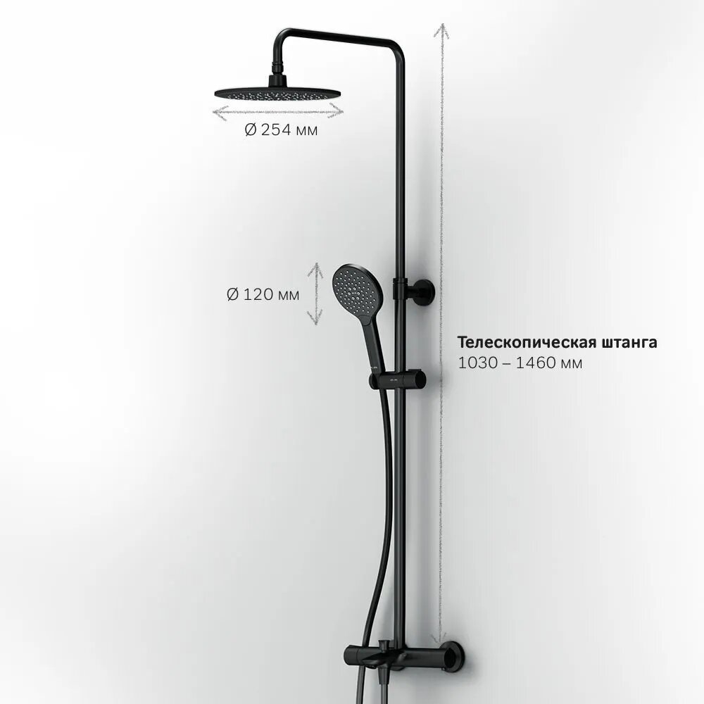 Душевая система Am.Pm Like (F0780564), с термостатом и изливом для ванны, черная