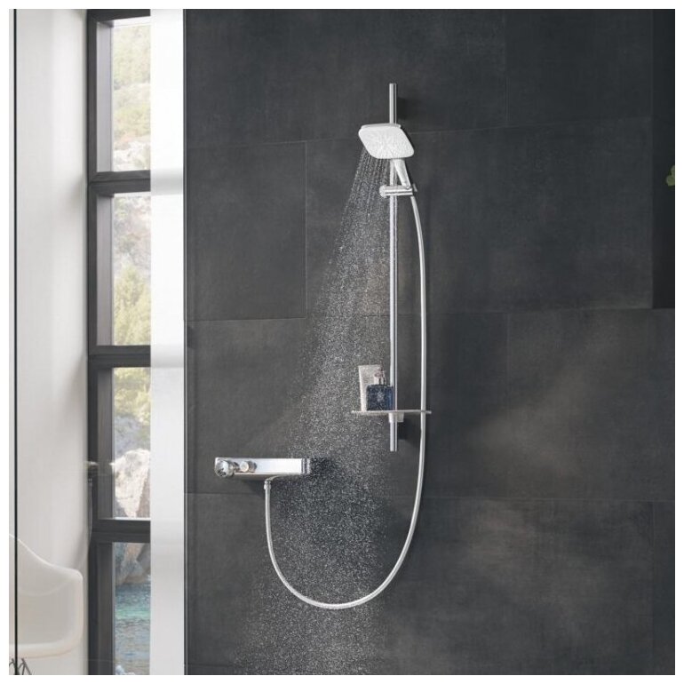 | Комплектация | Rainshower SmartActive 130 Cube Ручной душ (26550) / душевая штанга 900 мм с металлическими настенными креплениями / душевой шланг 1750 мм (28388000) / Полочка GROHE EasyReach |