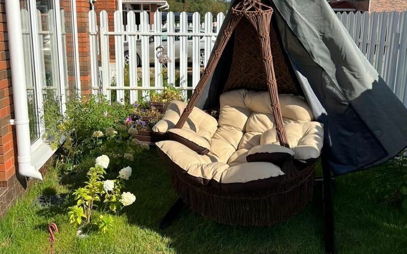 | Плюсы: | Качели внешне красивые, подушки и ручная работа замечательны, но само основание сделано ужасно, везде потеки лака, болты подобраны неверное, муж все новые приобретал. |