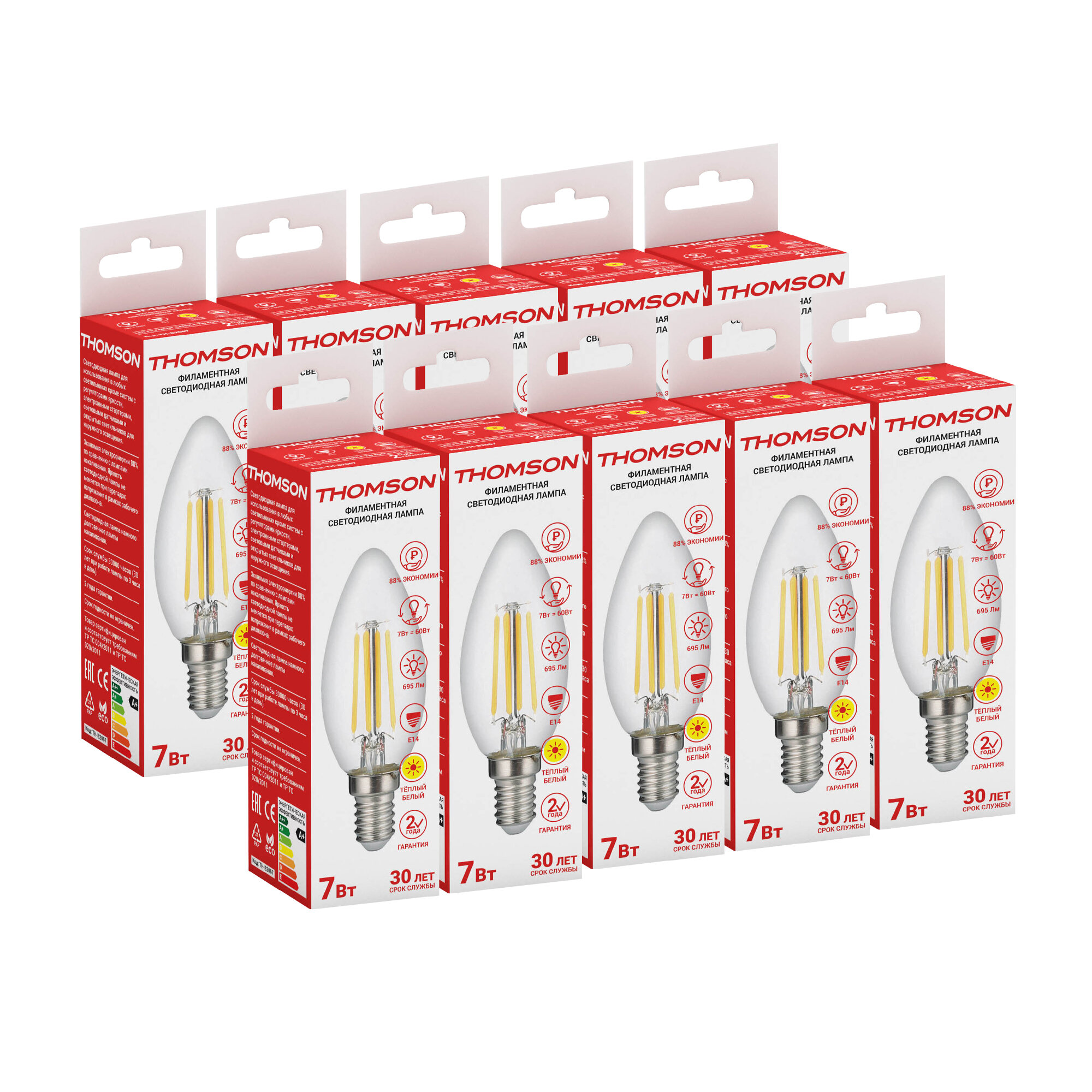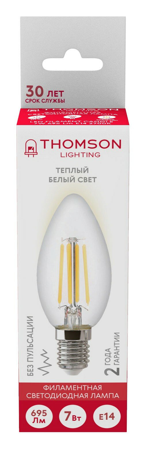 Лампа филаментная Thomson E14, свеча, 7Вт, 2700К, белый теплый, 1 шт.