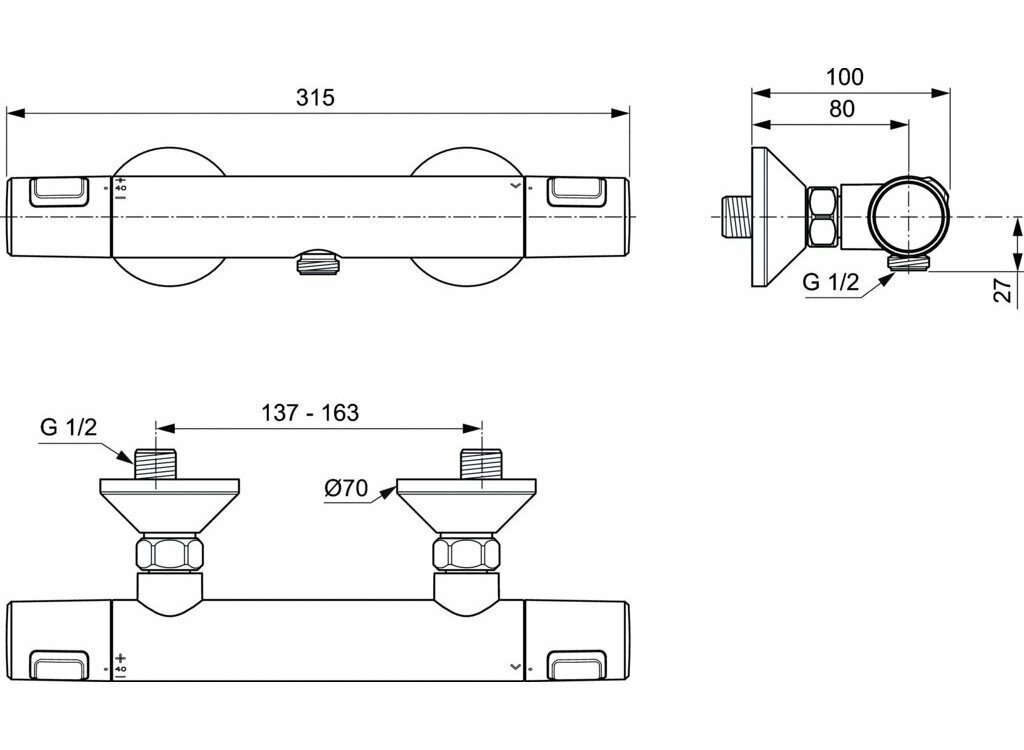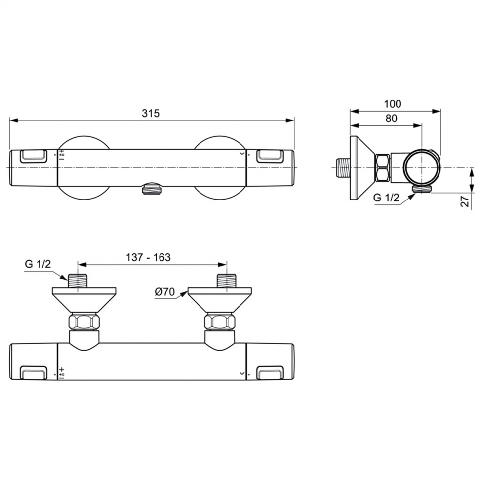 Ideal Standard Смеситель для душа Ideal Standard Ceratherm T25 A7201AA Хром