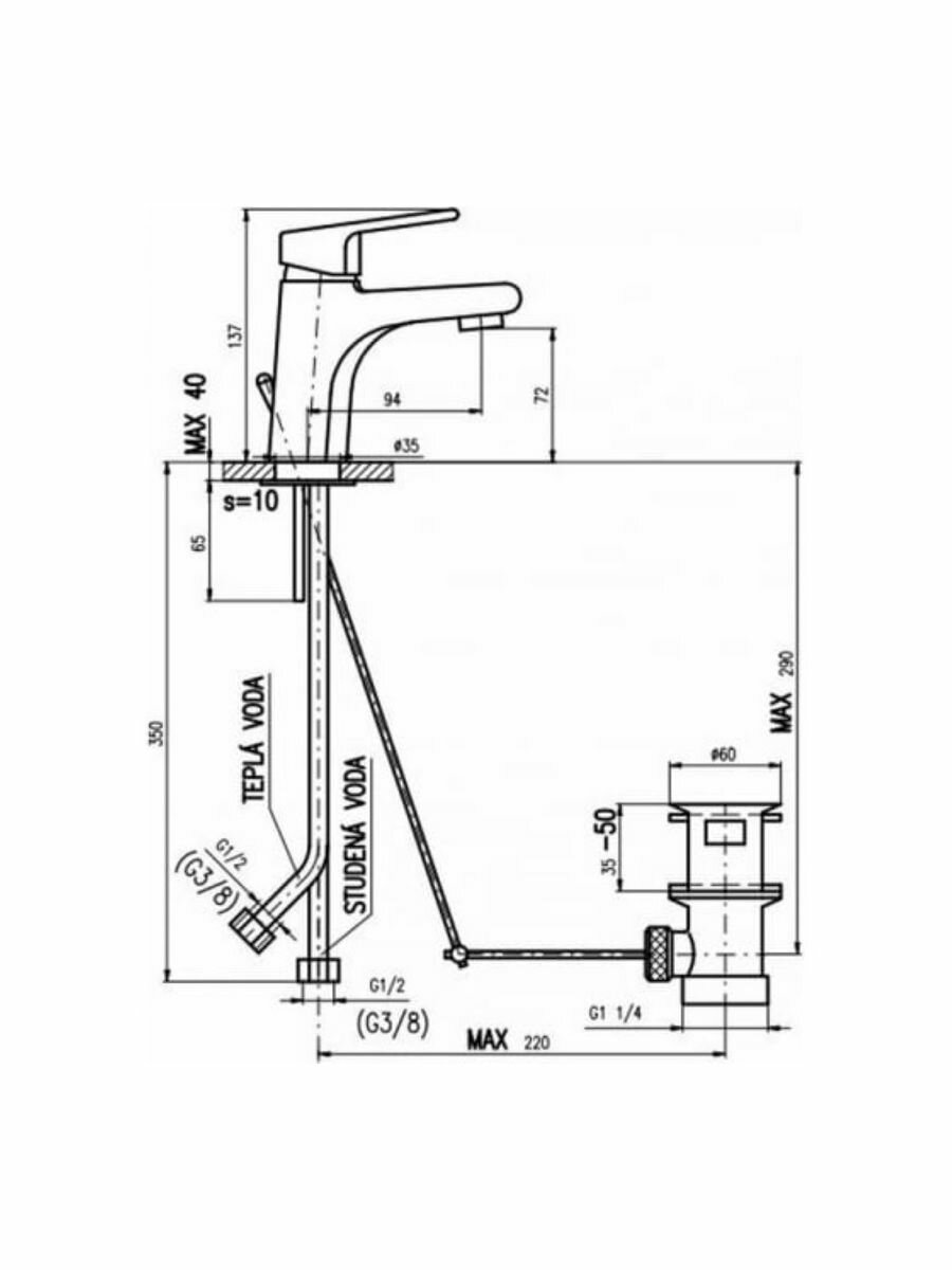 Смеситель RAV Slezаk Colorado для раковины, с донным клапаном пластаст, высота 143 мм