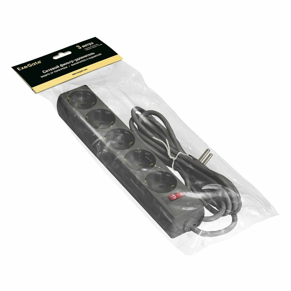 Сетевой фильтр ExeGate SP-5-3B (5 евророзеток с заземлением, 3м, защита от перегрузки, выключатель с