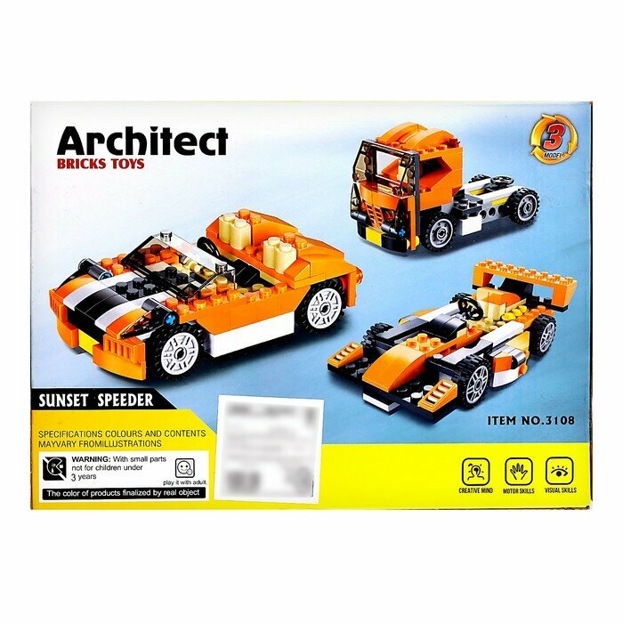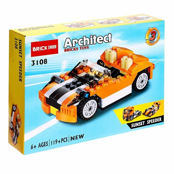 Купить Brick Конструктор «Гоночный автомобиль», 3 варианта сборки, 119 деталей
