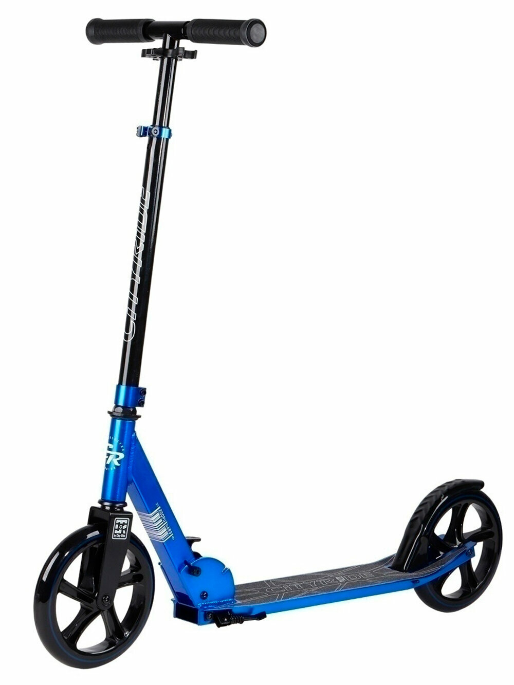 Cамокат двухколесный CITY-RIDE, дека: алюминий анодированный, сталь, колеса PU 200/200, подножка, цвет синий
