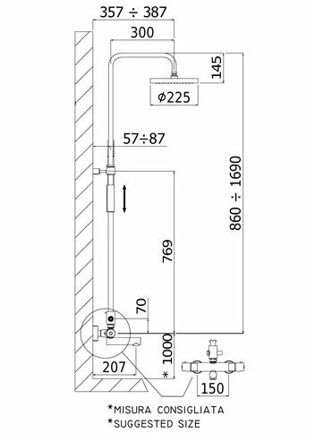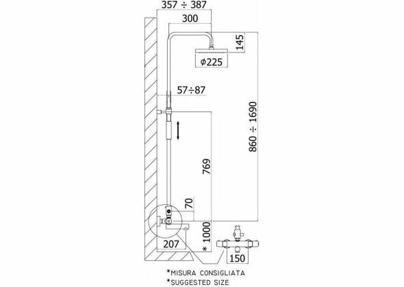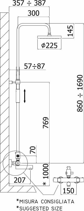 | Дополнительная информация | высота стойки для душа: 1690 мм; диаметр верхнего душа: 225 мм |