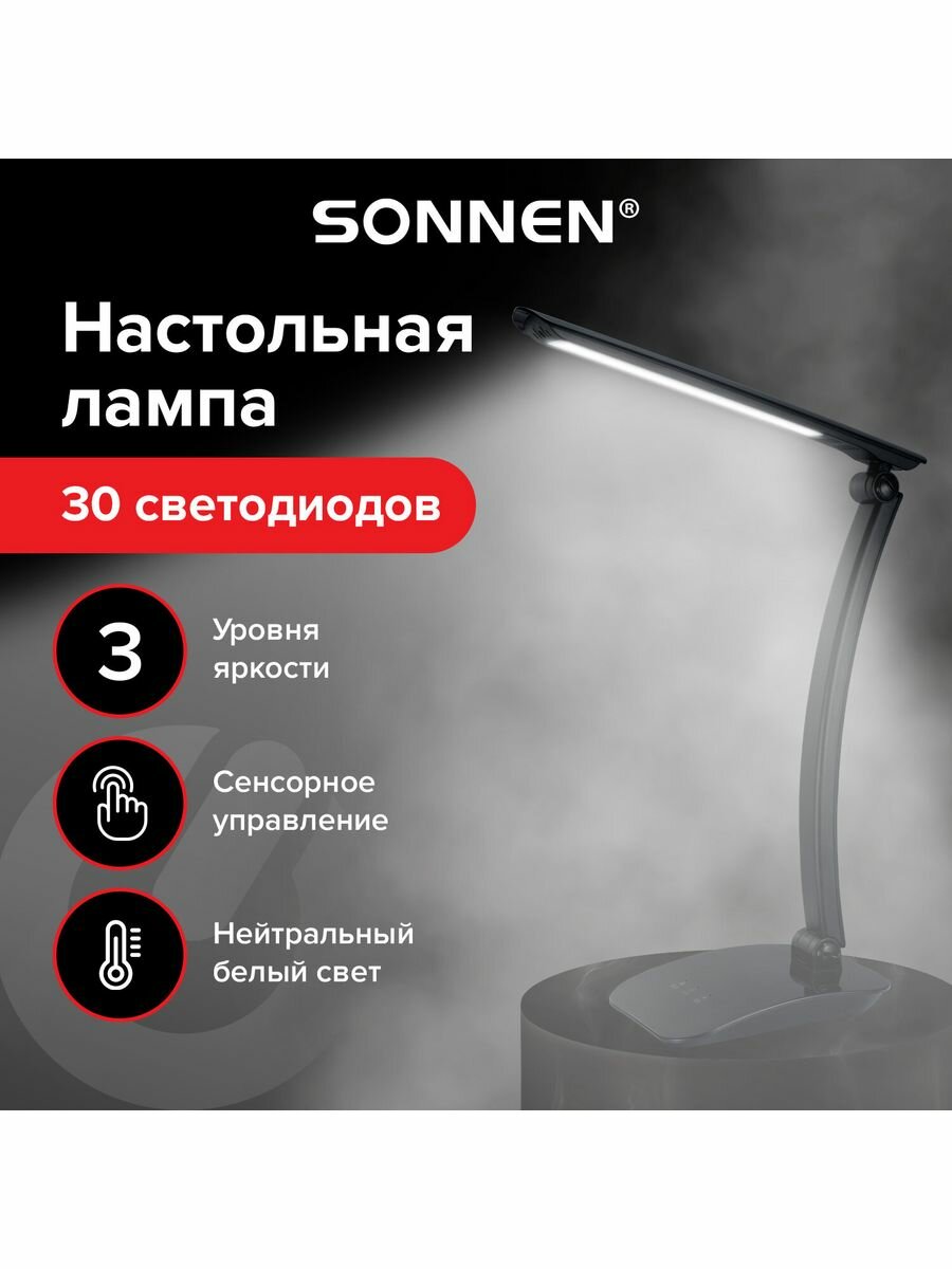 Настольная лампа светильник SONNEN PH-307, на подставке, светодиодная, 9 Вт, пластик, черный
