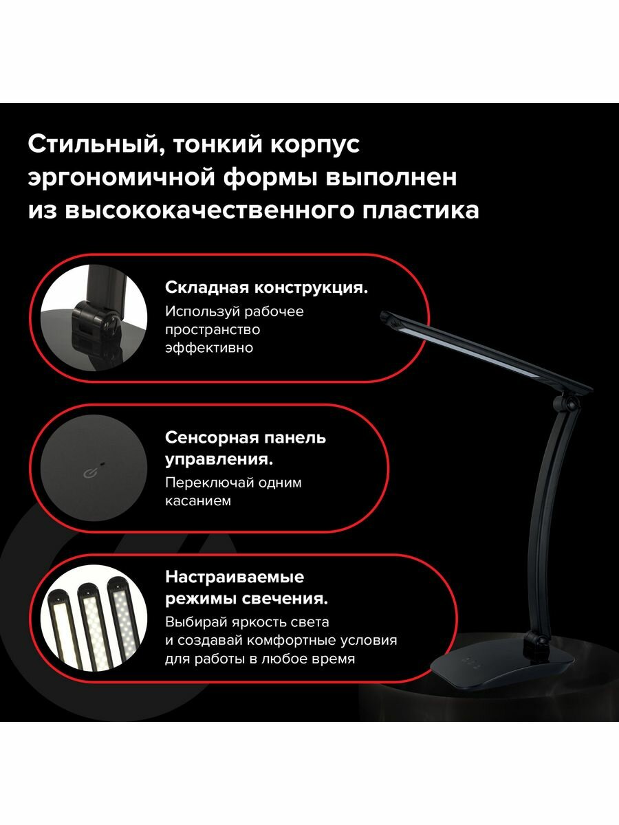 Настольная лампа-светильник SONNEN PH-307, на подставке, светодиодная, 9 Вт, пластик, черный, 236684 (арт. 236684)