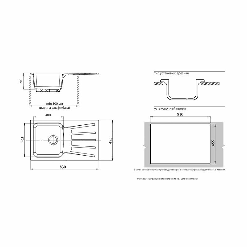 | Установка | врезная |