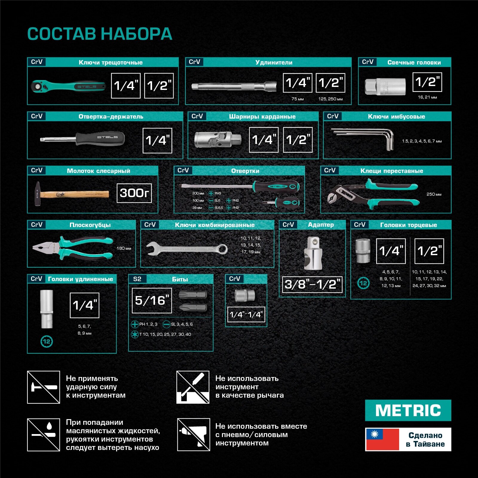Набор инструментов Stels 14116, 1/4", 1/2", головки 4-32 мм, 12 гр., 76 предметов Stels