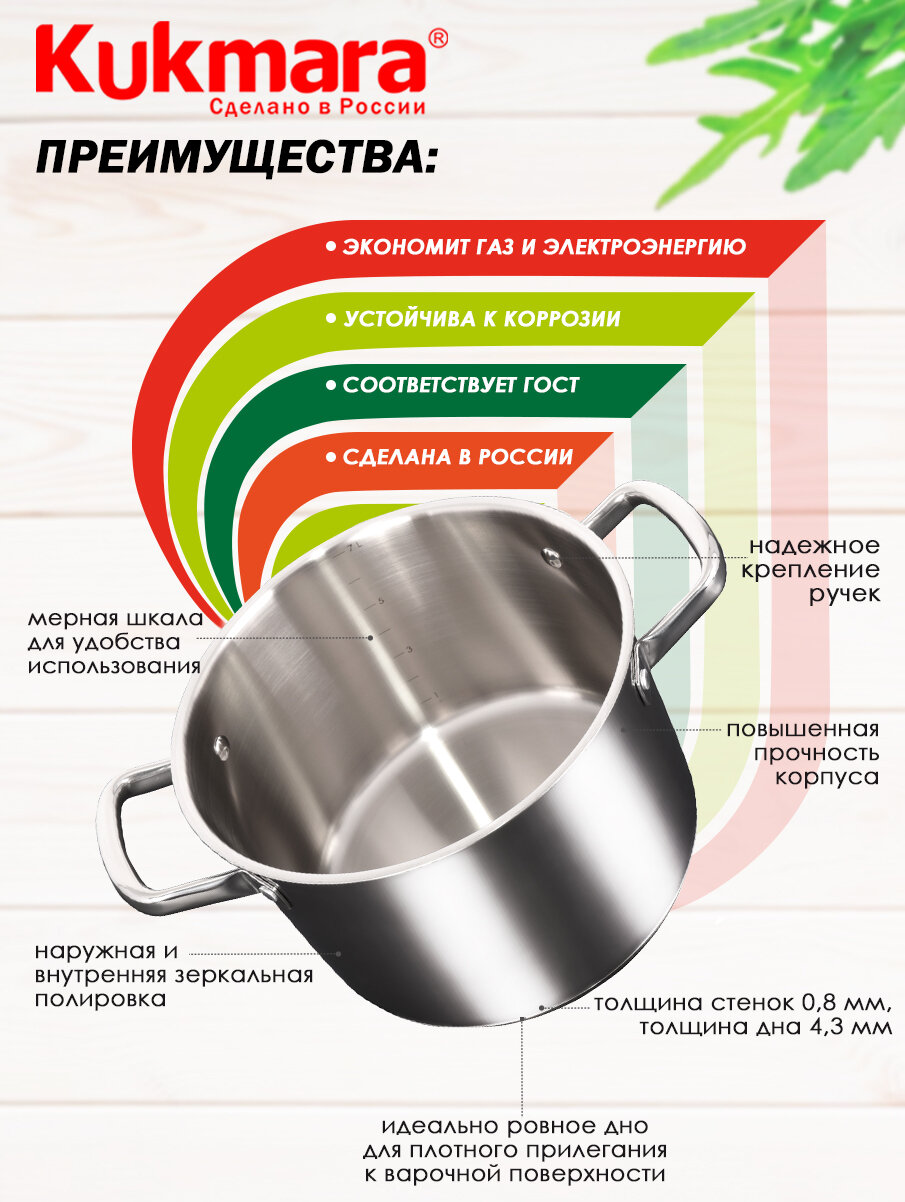 Кастрюля Kukmara серия Leon из нержавеющей стали со стеклянной крышкой