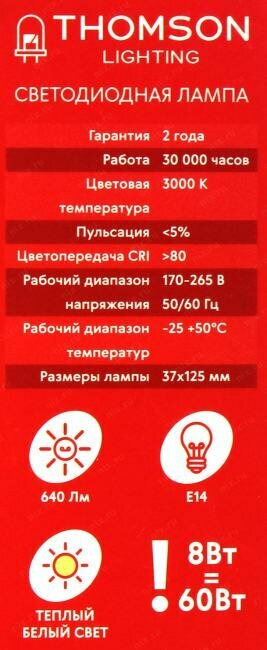 Ниже Вы можете прочитать отзывы на Лампочка Thomson TH-B2027 8 Вт, E14, 3000K, свеча на ветру, теплый белый свет, ознакомится с подробными характеристиками, посмотреть интересные обзоры и фотографии на Лампочка Thomson TH-B2027 8 Вт, E14, 3000K, свеча на ветру, теплый белый свет.