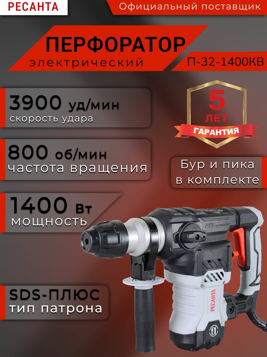 Перфоратор П-32-1400КВ Ресанта, SDS-Plus, 1400Вт