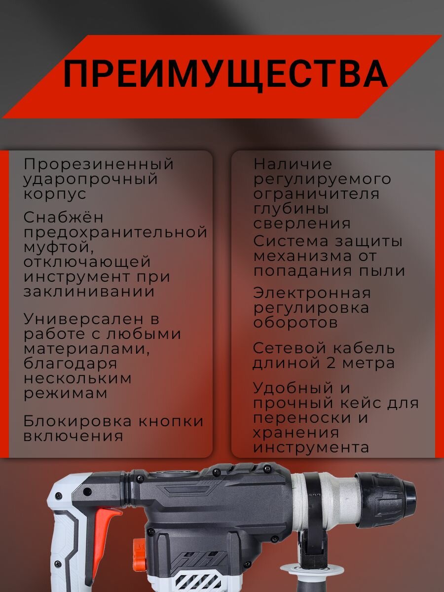 | Особенности конструкции | антивибрационная система / блокировка кнопки включения / предохранительная муфта |