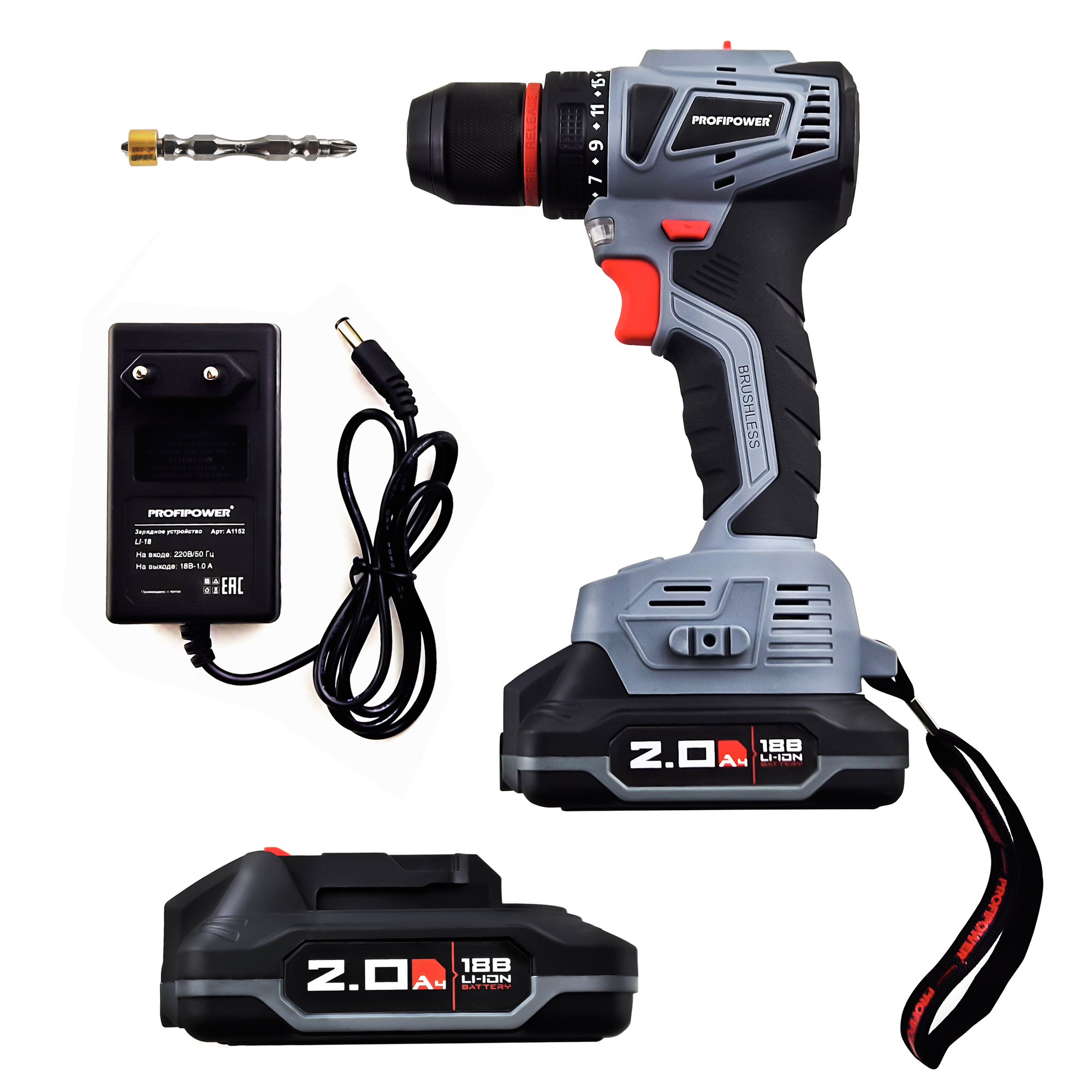 Дрель шуруповерт аккумуляторная бесщеточная Profipower 18В, MKBL-18В