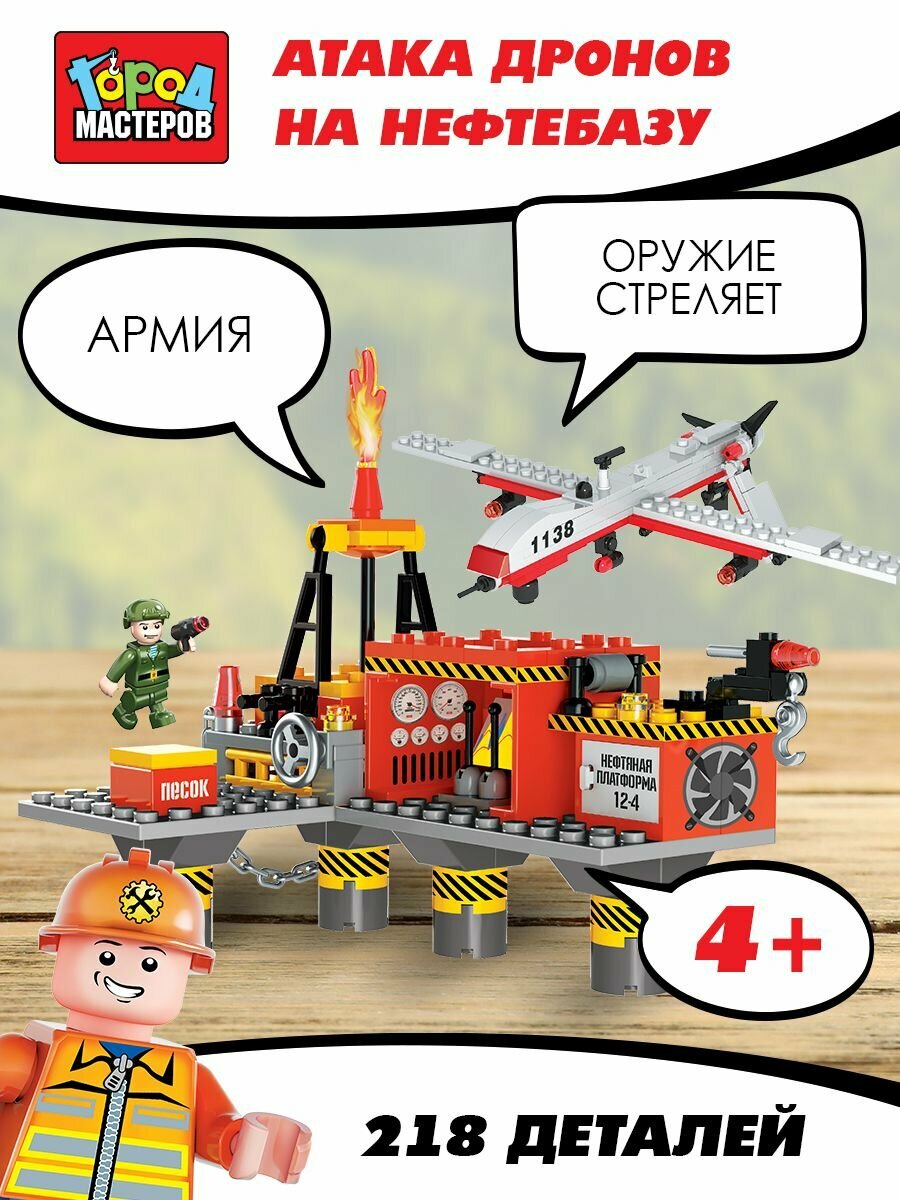 Конструктор "Город мастеров" атака дрона на нефтебазу, с фигурками, 218дет. в русс. кор.