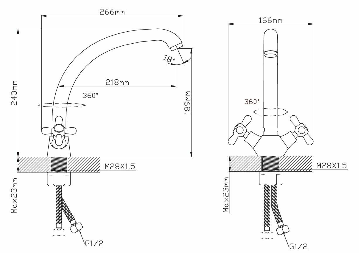Смеситель для кухни Diadonna D80-742301 высокий излив, керамические кран-буксы, хром, крепление гайка интересное: