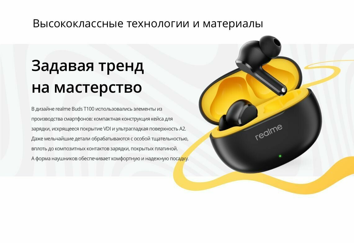 Беспроводные наушники realme Buds T100 черный, ANC, шумоподавление