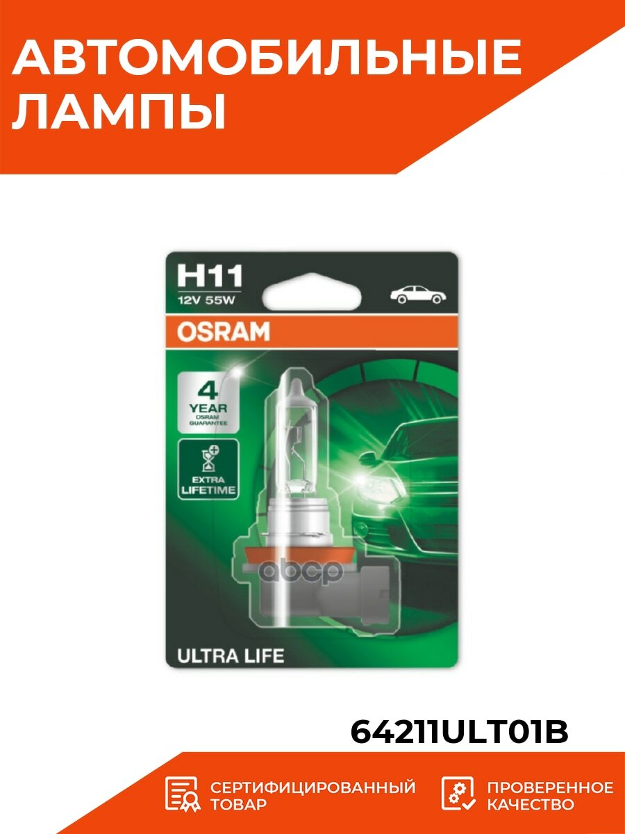 Лампа H11 12v 55w Pgj19-2 Ultra Life 4 Года Гарантии 1 Шт. Osram арт. 64211ULT