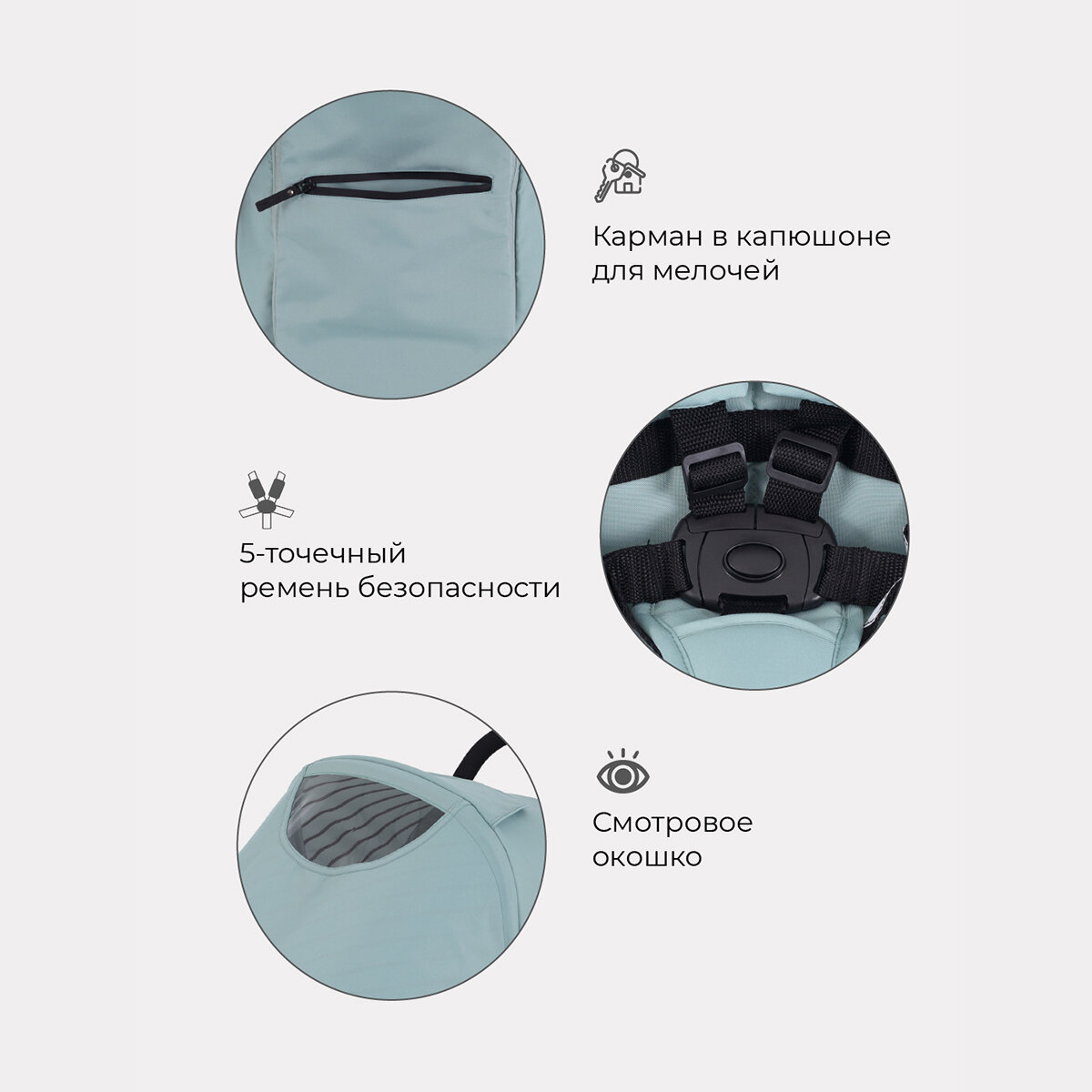 | Капюшон | капюшон опускается до бампера, карман на капюшоне, материал с УФ-защитой |