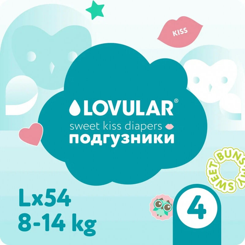 Подгузники LOVULAR SWEET KISS L (8-14 кг) 54 шт