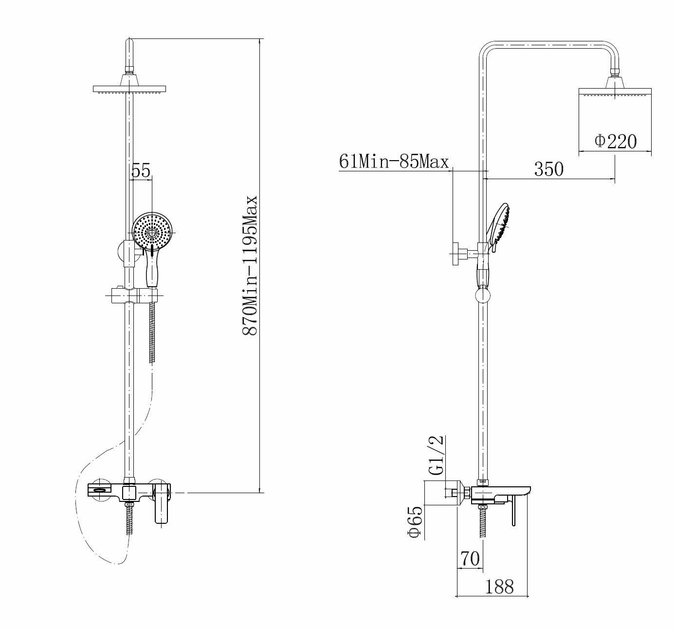 | Форма бокового душа | круглая |