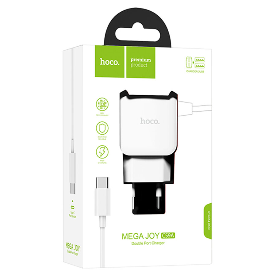 Сетевое зарядное устройство (СЗУ) Hoco C59A Mega joy (2 USB) + кабель Type-C, 2.4 А, белый
