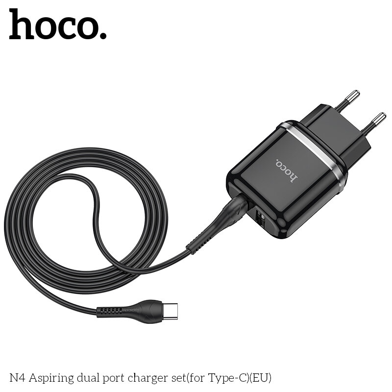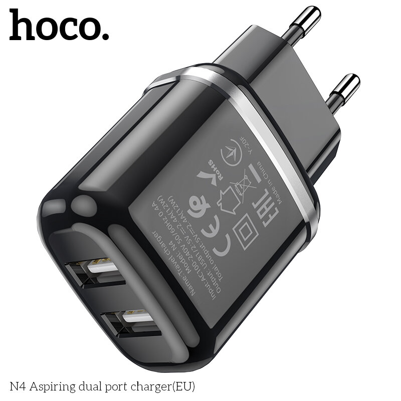 Сетевое зарядное устройство HOCO N4 Aspiring 2xUSB, 2.4A, 10.8W, черный