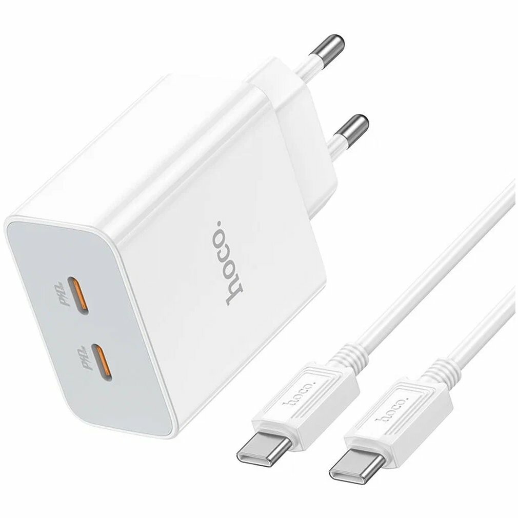 Сетевое зарядное устройство HOCO C108A Leader 2xUSB Type-C с кабелем Type-C - Type-C, 3A, 35W, белый