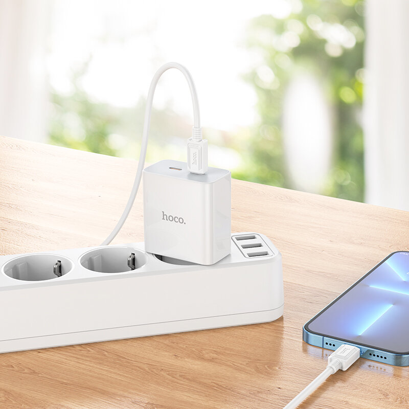 Сетевое зарядное устройство Hoco C108A Leader, PD35W+QC3.0 + кабель USB Type-C - USB Type-C, 1м, белый